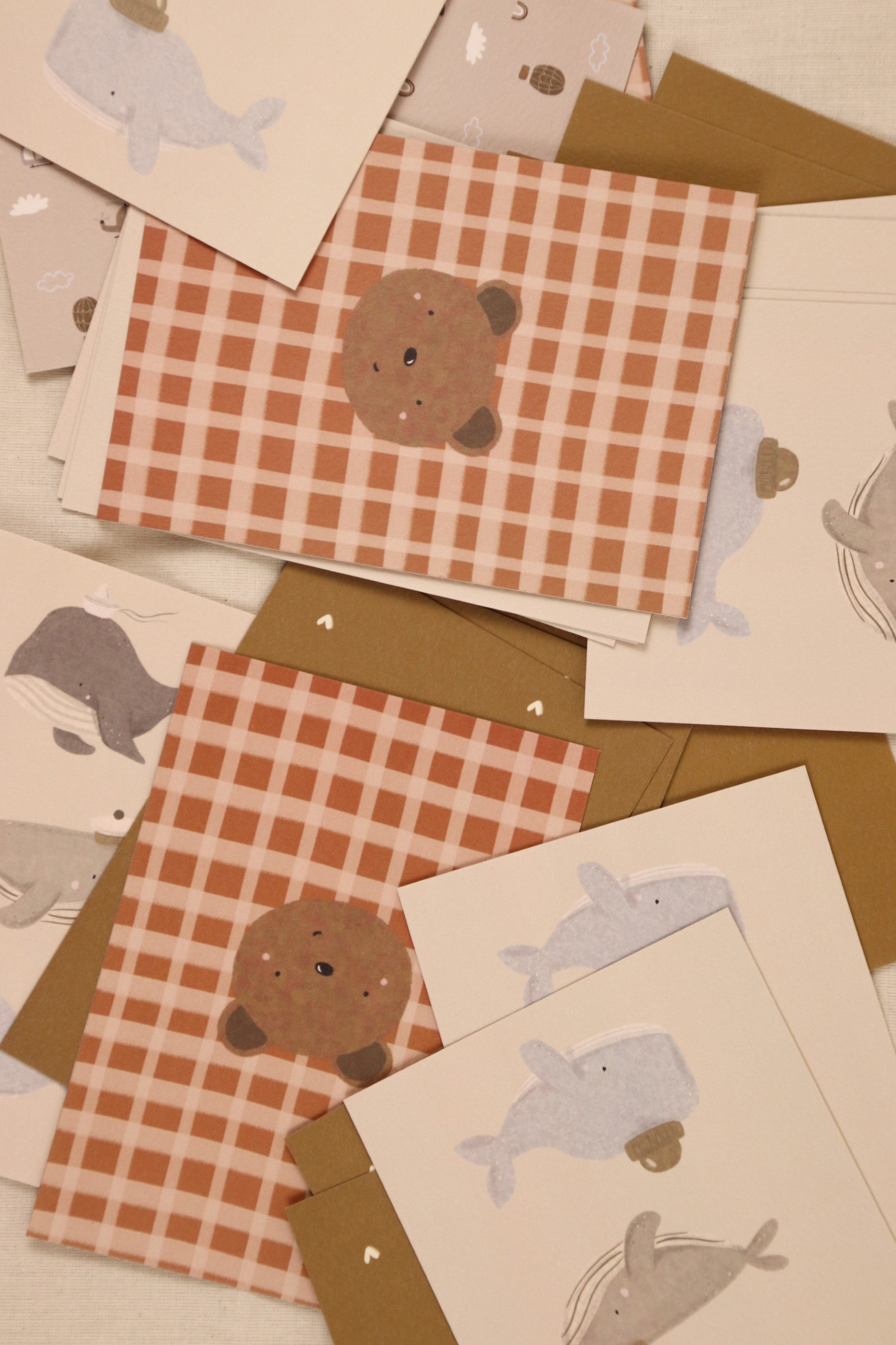 Ontdek onze met de hand getekende ansichtkaarten, gedrukt op prachtig reliëf papier dat de illustratie tot leven brengt. Perfect om iemand te verrassen, een glimlach te bezorgen of gewoon een mooi moment vast te leggen.