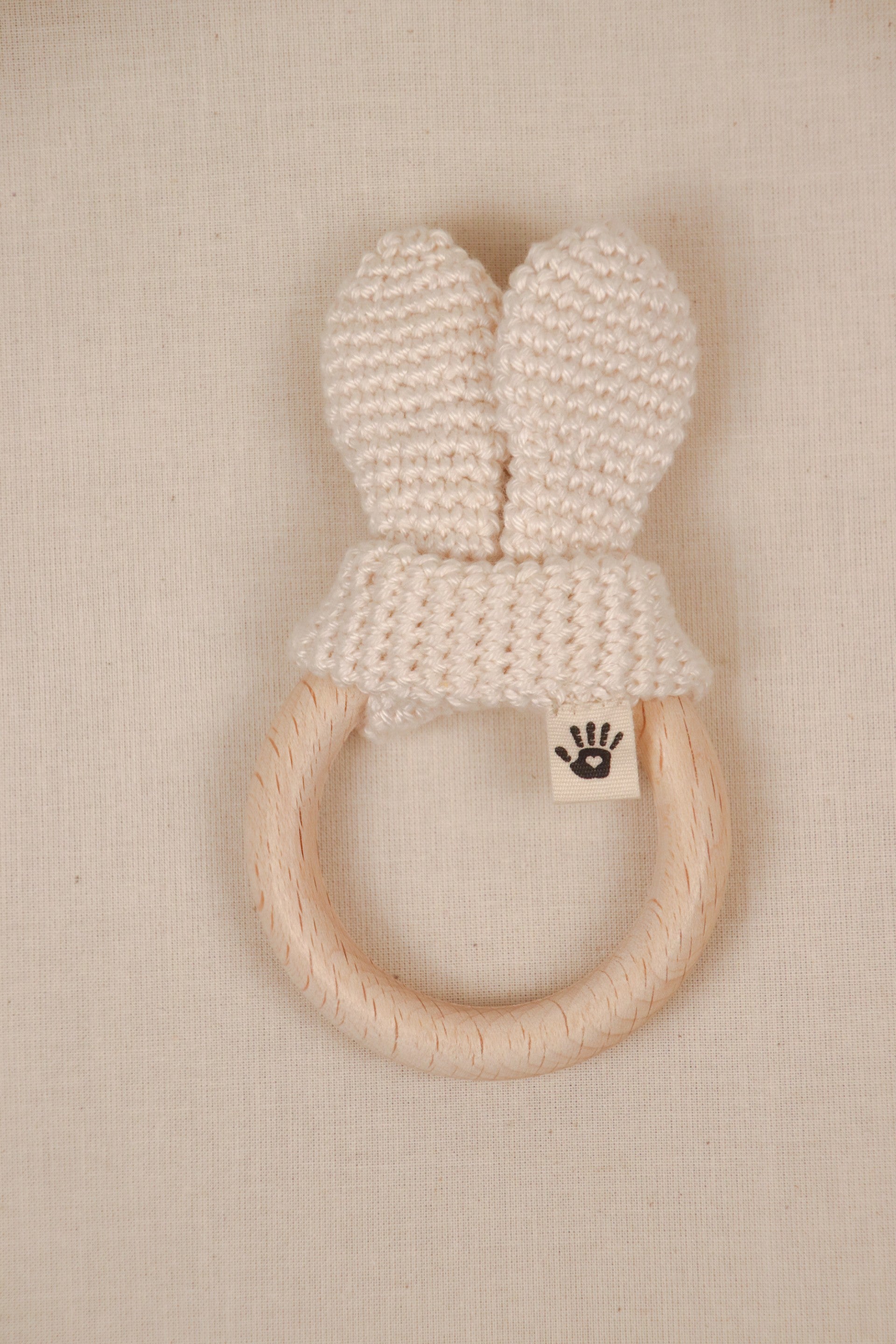Deze lieve bijtring met konijnenoortjes is een favoriet voor baby’s die graag ontdekken. De ring is gemaakt van glad, onbehandeld beukenhout dat fijn in kleine handjes ligt en heerlijk is om op te bijten bij doorkomende tandjes. De gehaakte oortjes van 100% katoen geven een zachte, speelse textuur waar baby’s graag aan voelen en sabbelen.