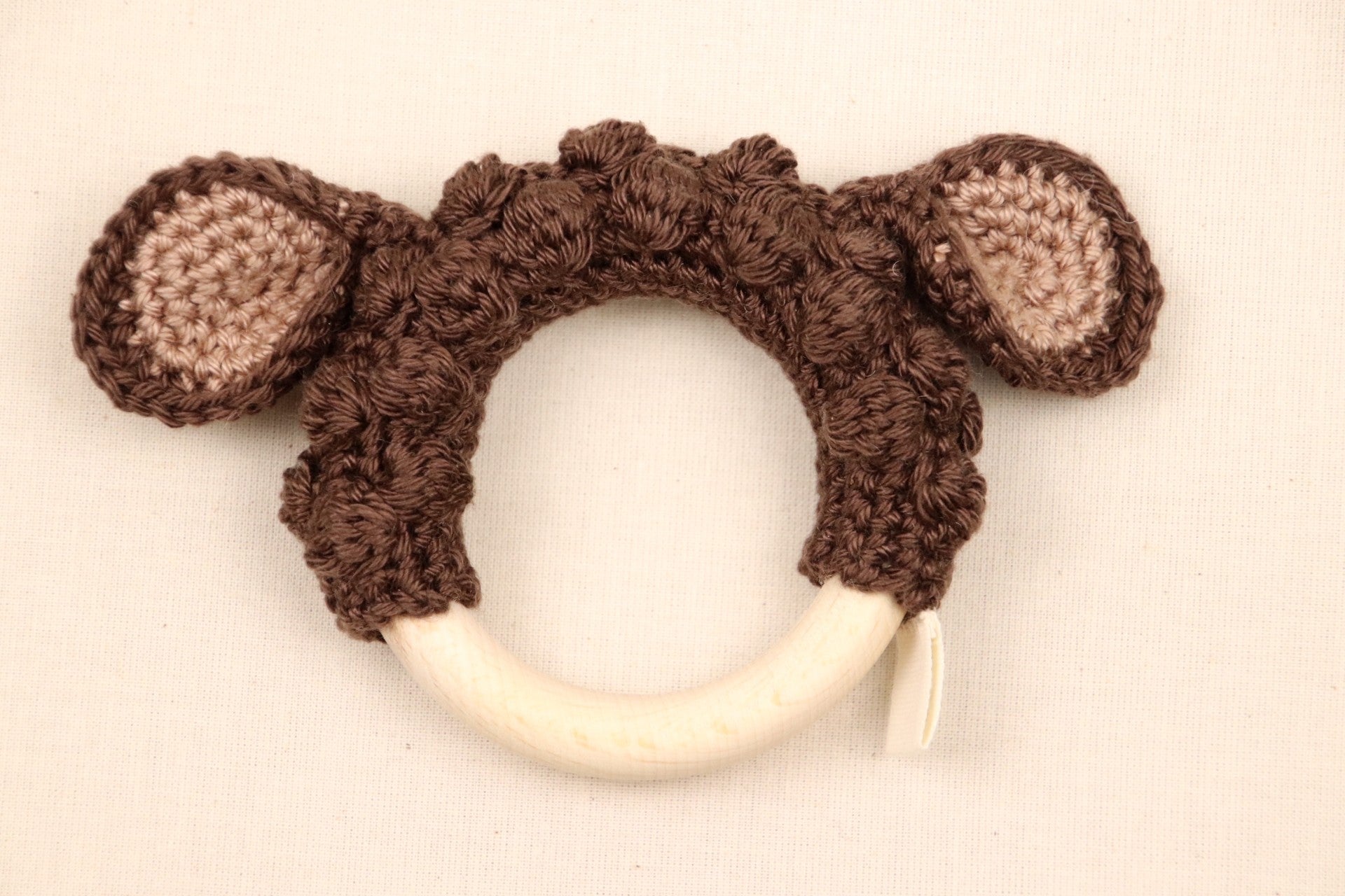 Deze lieve handgemaakte bijtring is speciaal ontworpen voor kleine handjes en gevoelige mondjes. De ring is gemaakt van glad, onbehandeld beukenhout dat prettig aanvoelt en veilig is om op te bijten. Het schapenvachtje en de oortjes zijn gemaakt van 100% katoen in warme, natuurlijke tinten. Een speels detail dat meteen de aandacht trekt van je kindje.