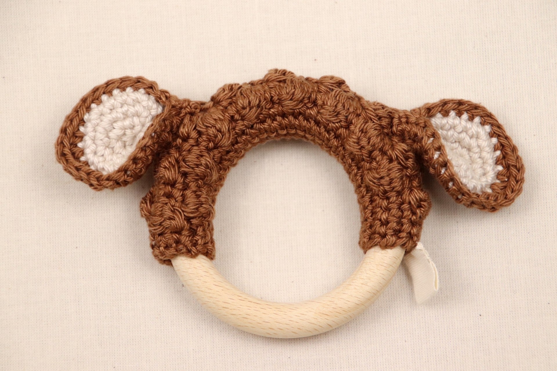 Deze lieve handgemaakte bijtring is speciaal ontworpen voor kleine handjes en gevoelige mondjes. De ring is gemaakt van glad, onbehandeld beukenhout dat prettig aanvoelt en veilig is om op te bijten. Het schapenvachtje en de oortjes zijn gemaakt van 100% katoen in warme, natuurlijke tinten. Een speels detail dat meteen de aandacht trekt van je kindje.