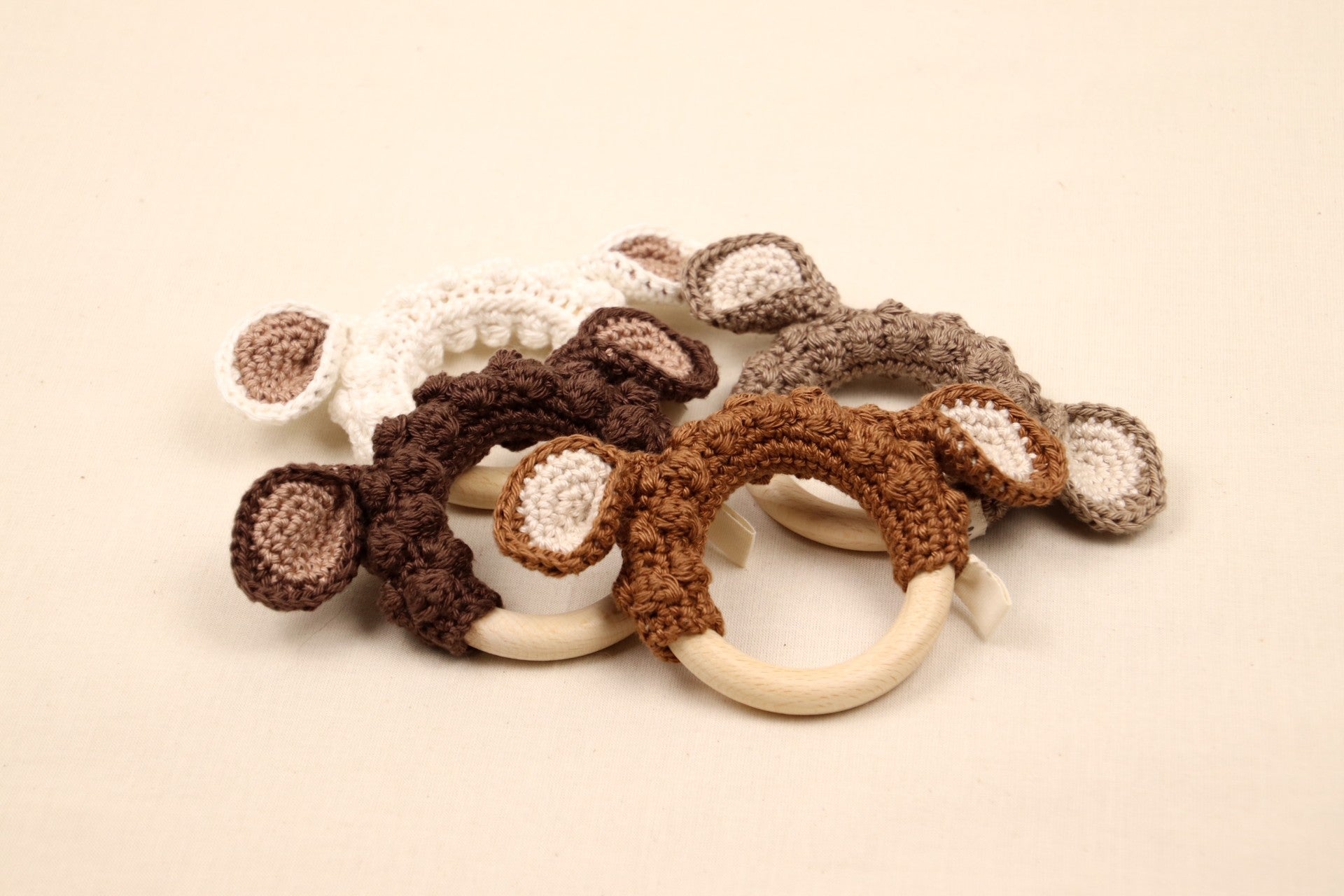 De combinatie van hout en zachte, gehaakte katoenstructuur biedt verschillende materialen om te ontdekken, wat de sensomotorische ontwikkeling stimuleert. Ideaal tijdens doorkomende tandjes, maar ook leuk als eerste grijpspeeltje.