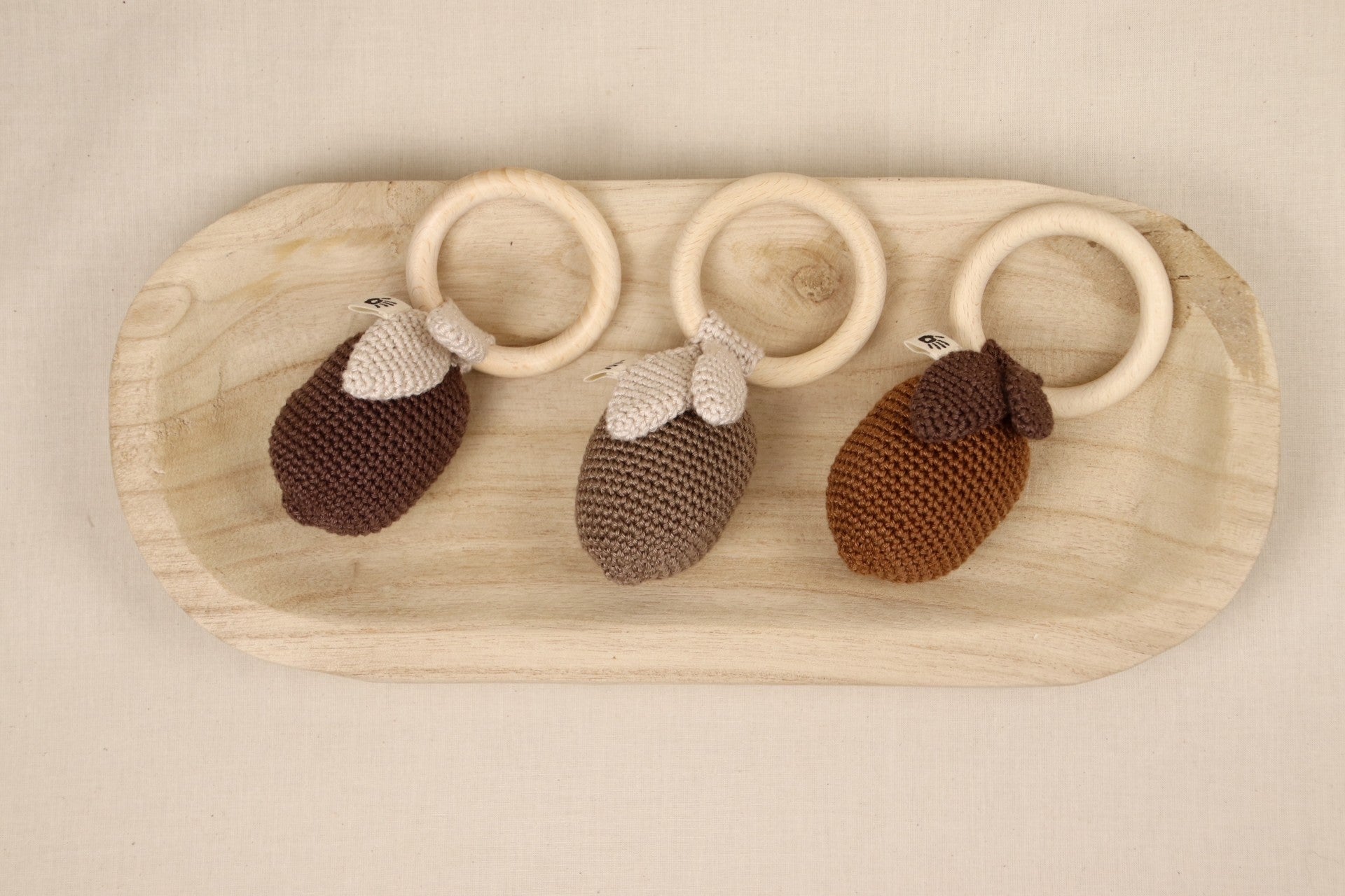 Deze schattige handgemaakte citroenrammelaars brengen meteen een glimlach op je gezicht, én dat van je kleintje. Perfect voor kleine ontdekkers die graag willen grijpen, voelen en luisteren.