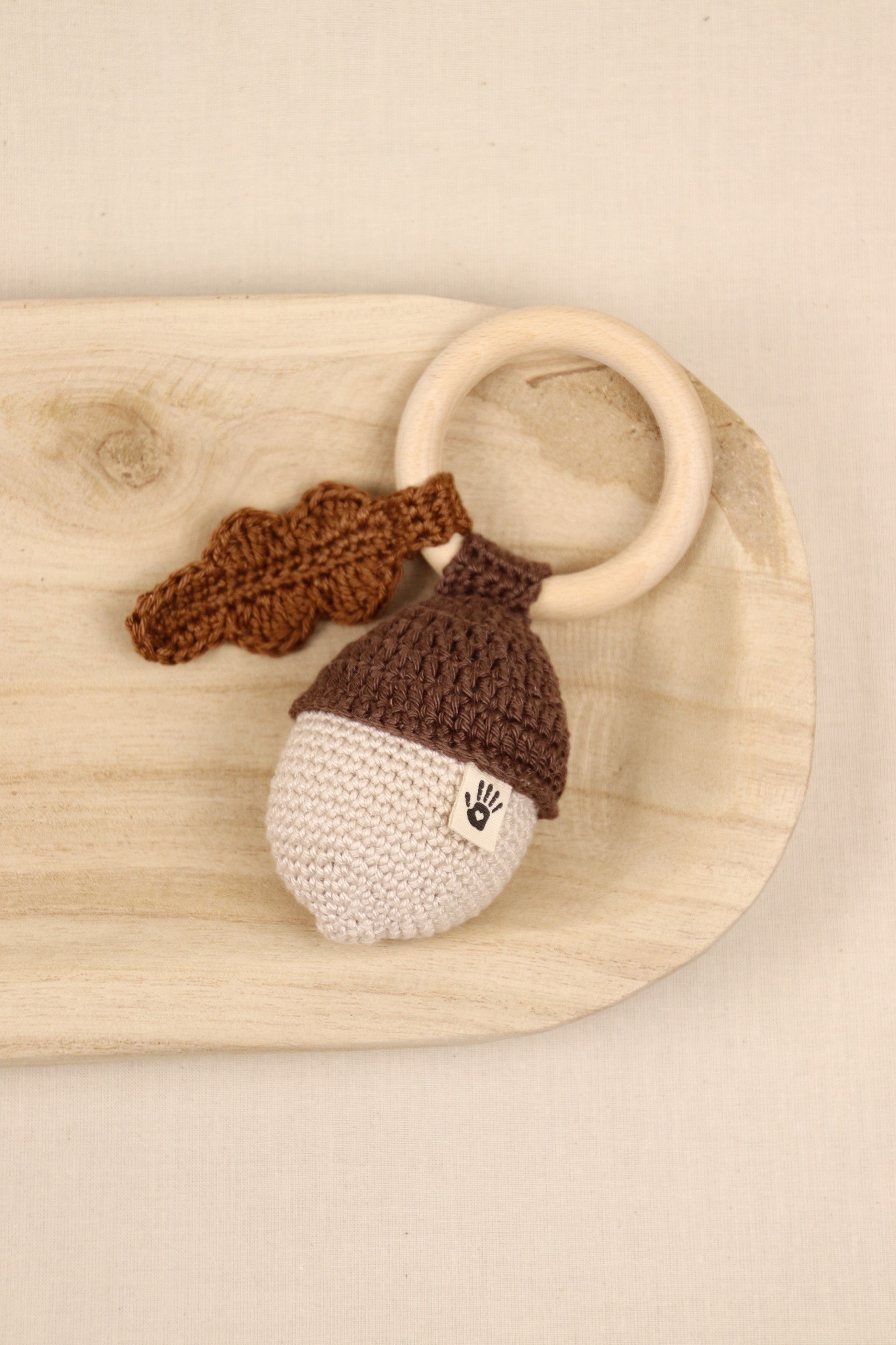 Deze schattige handgemaakte eikeltjesrammelaars brengen meteen een glimlach op je gezicht, én dat van je kleintje. Perfect voor kleine ontdekkers die graag willen grijpen, voelen en luisteren.