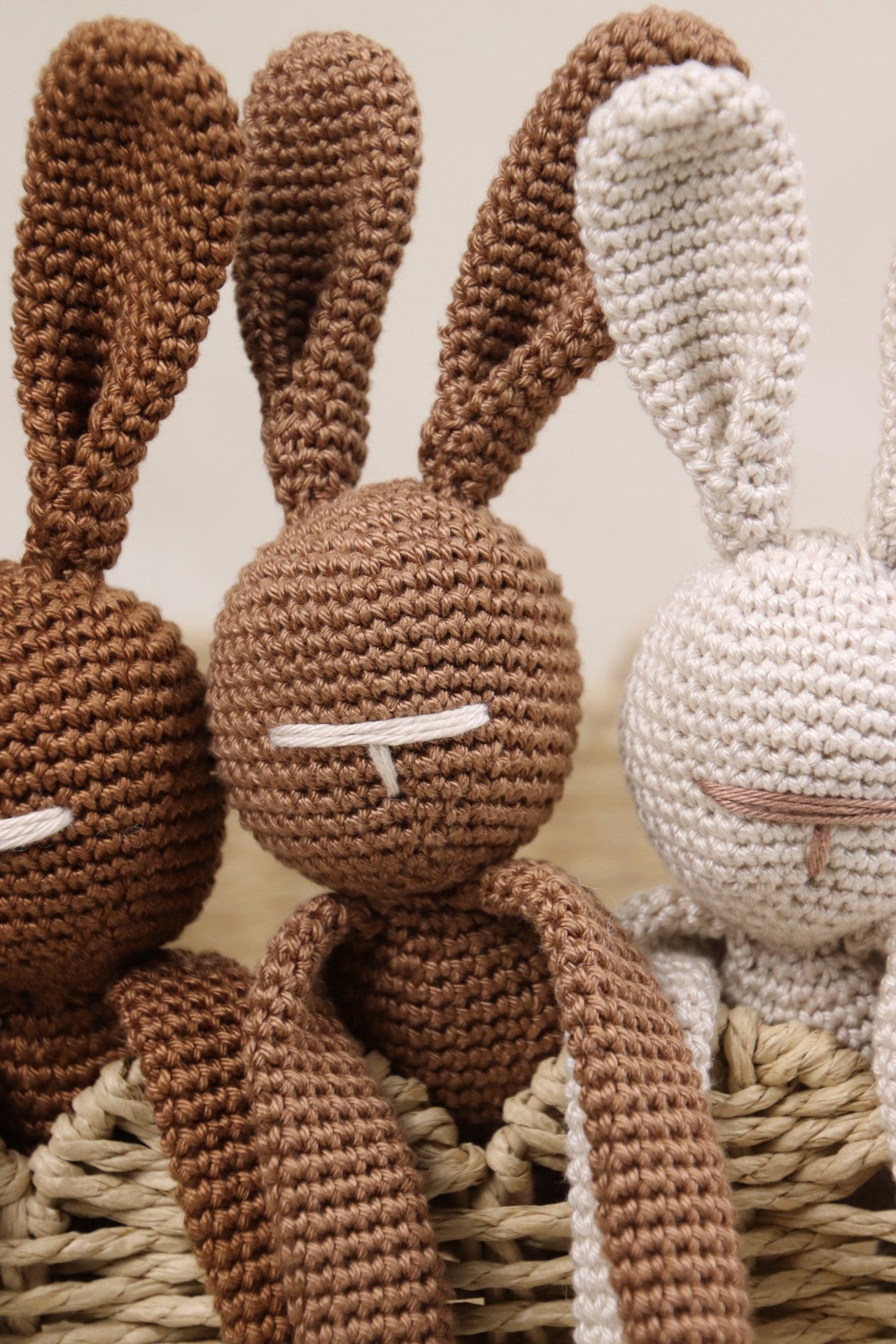 Elk konijn heeft zijn eigen karakter en wordt met de hand gemaakt, steekje voor steekje. Door het natuurlijke katoen voelt het knuffeltje warm en vertrouwd aan, en is het geschikt voor zelfs de kleinste kinderhandjes.
