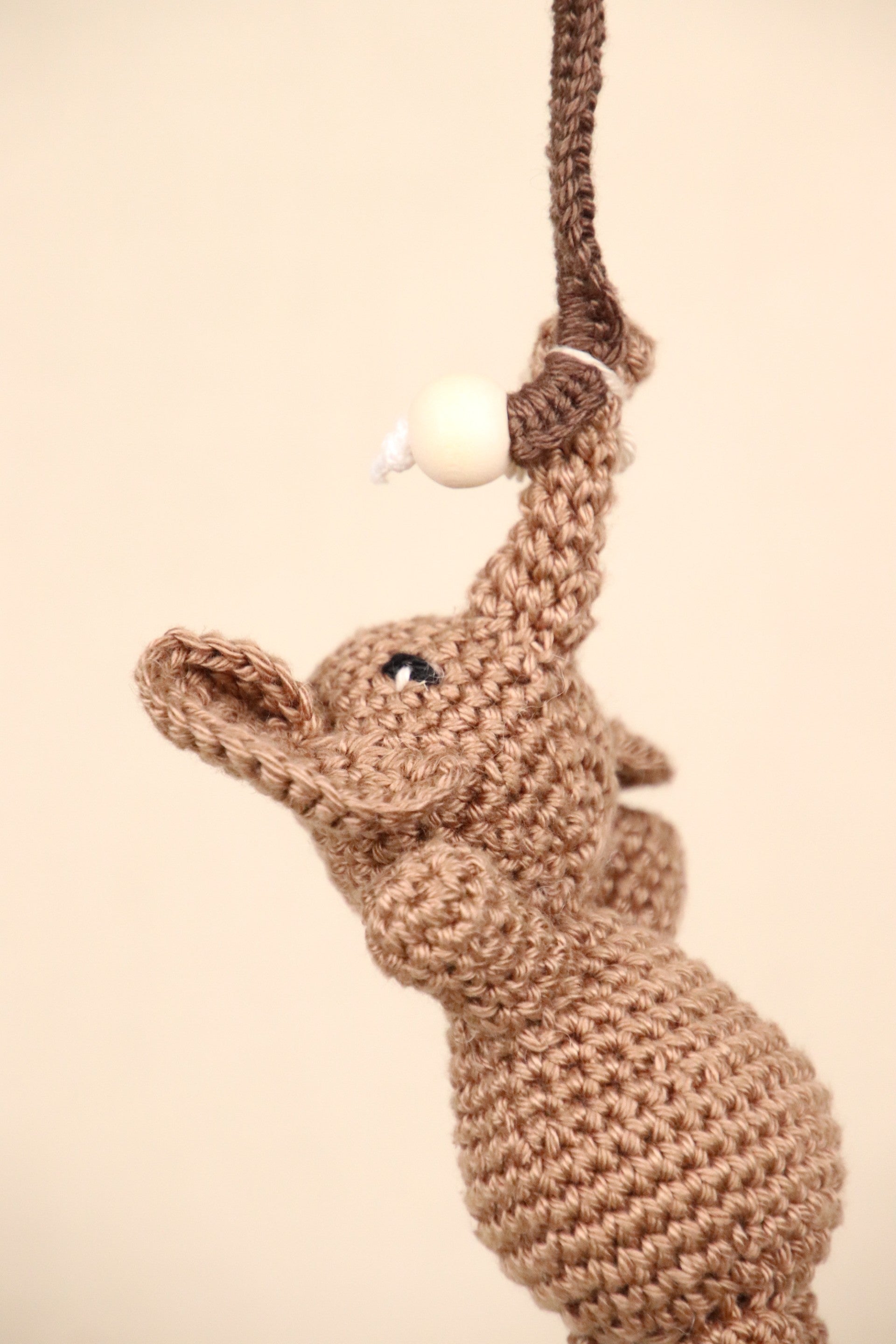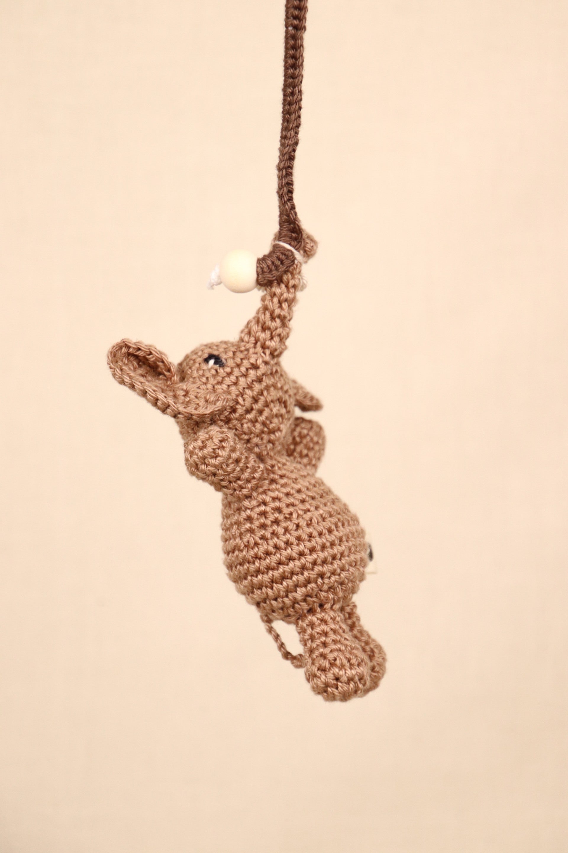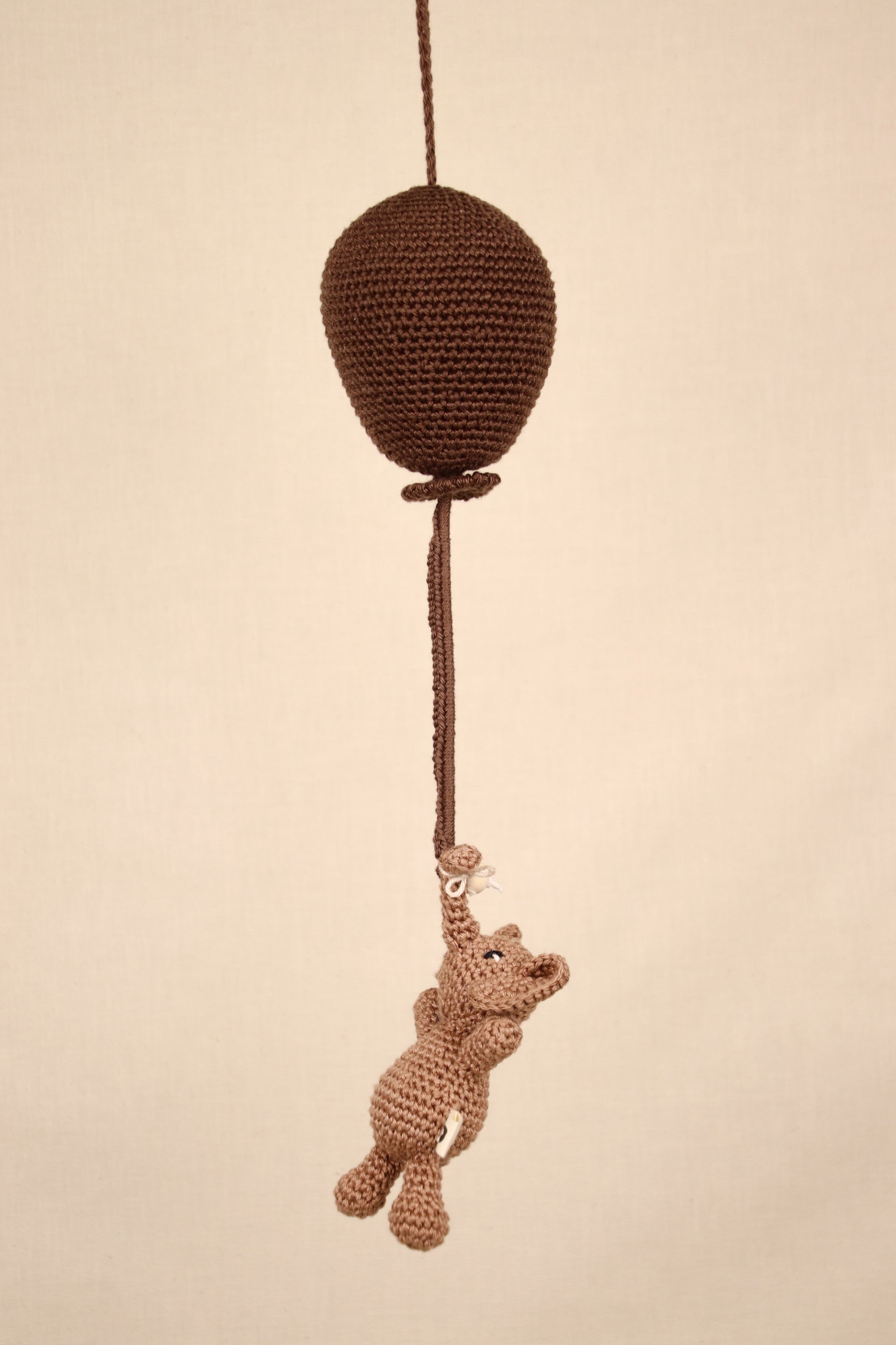 Breng rust, sfeer en een vleugje magie in de babykamer met deze schattige muziekhanger. Het schattige kleine olifantje bungelt speels aan een zacht gehaakt ballonnetje, klaar om de aandacht van je kleintje te vangen. De natuurlijke kleuren en zachte texturen passen perfect in elke stijl babykamer.