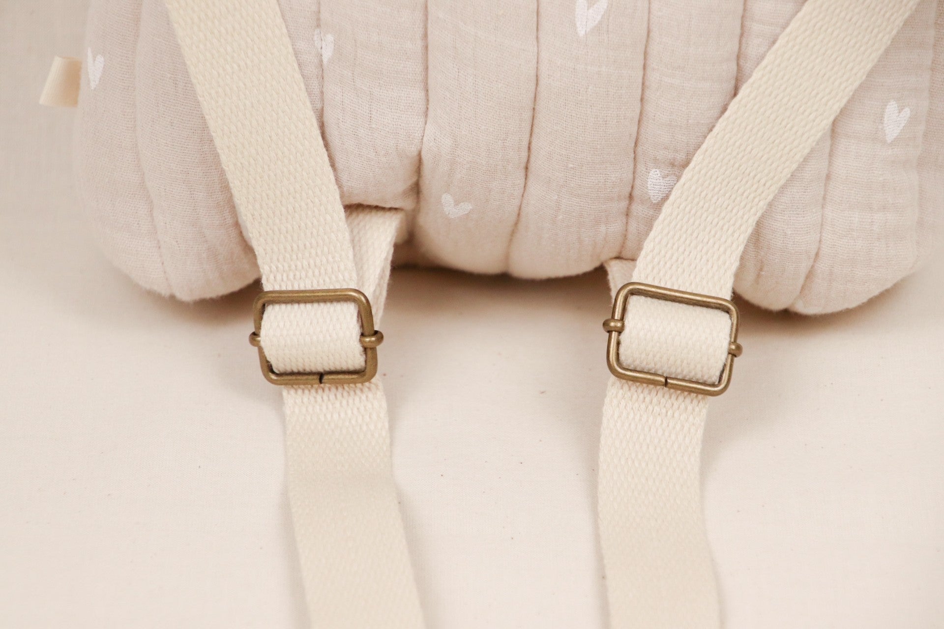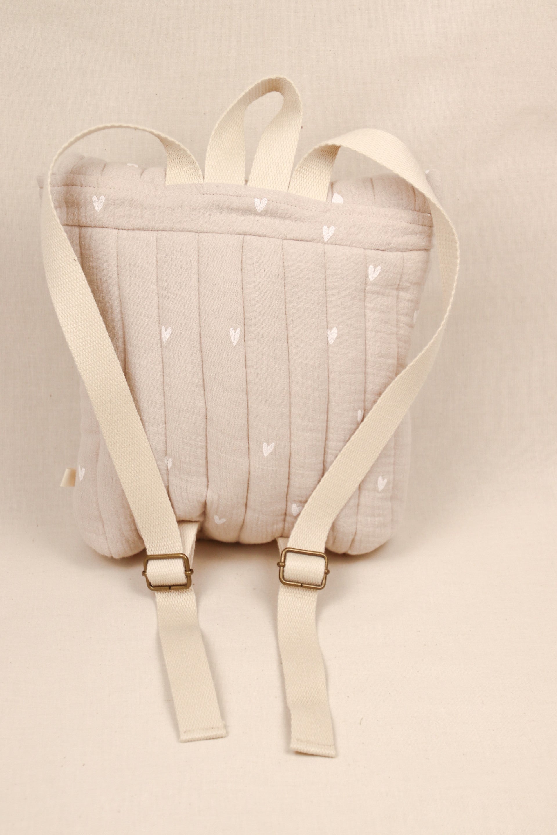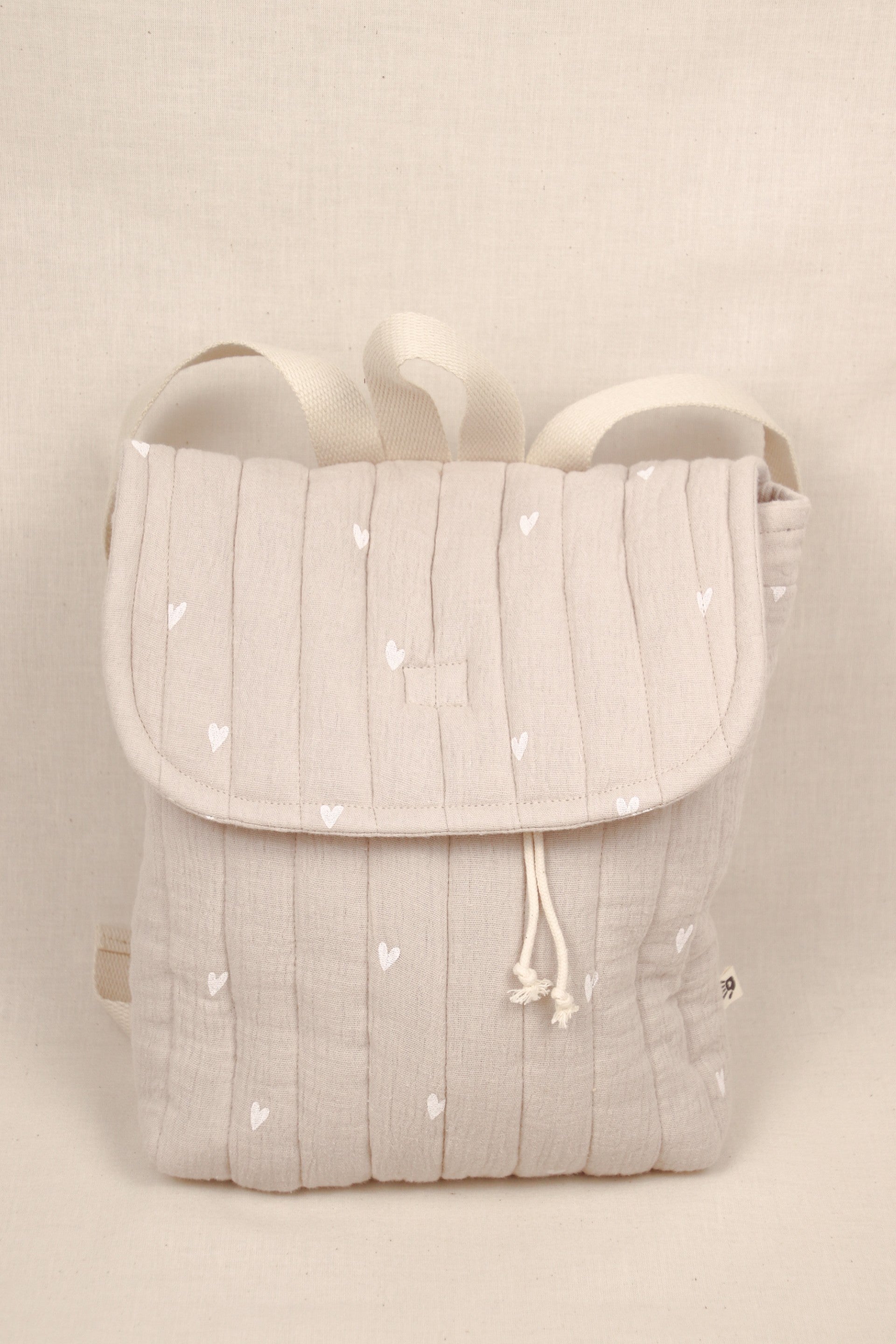 Dit lieve handgemaakte rugzakje is de perfecte metgezel voor kleine avonturiers. Het is gemaakt van zacht, lichtgewicht katoen en heeft een subtiel gewatteerde structuur die comfortabel draagt én er prachtig uitziet.