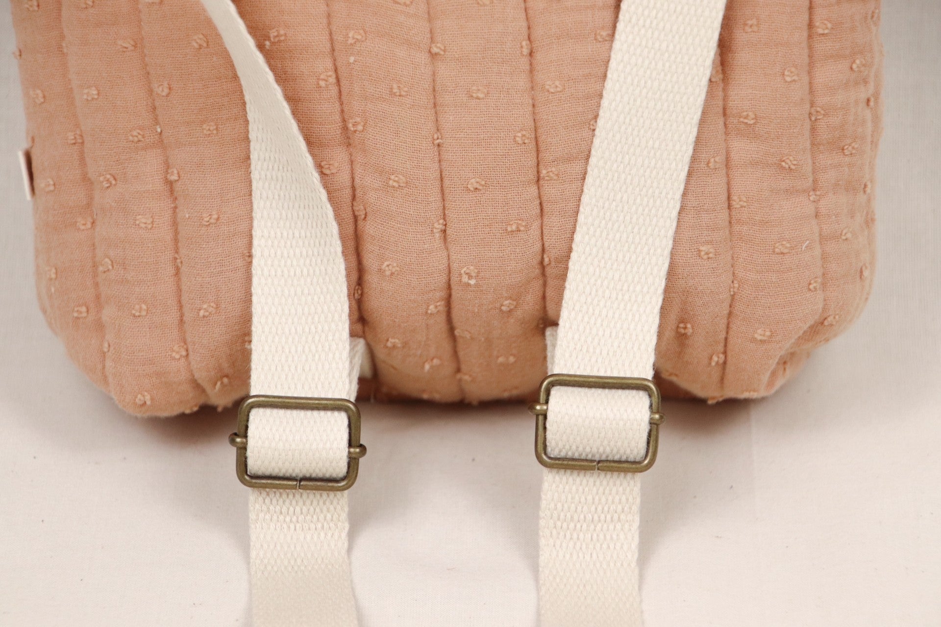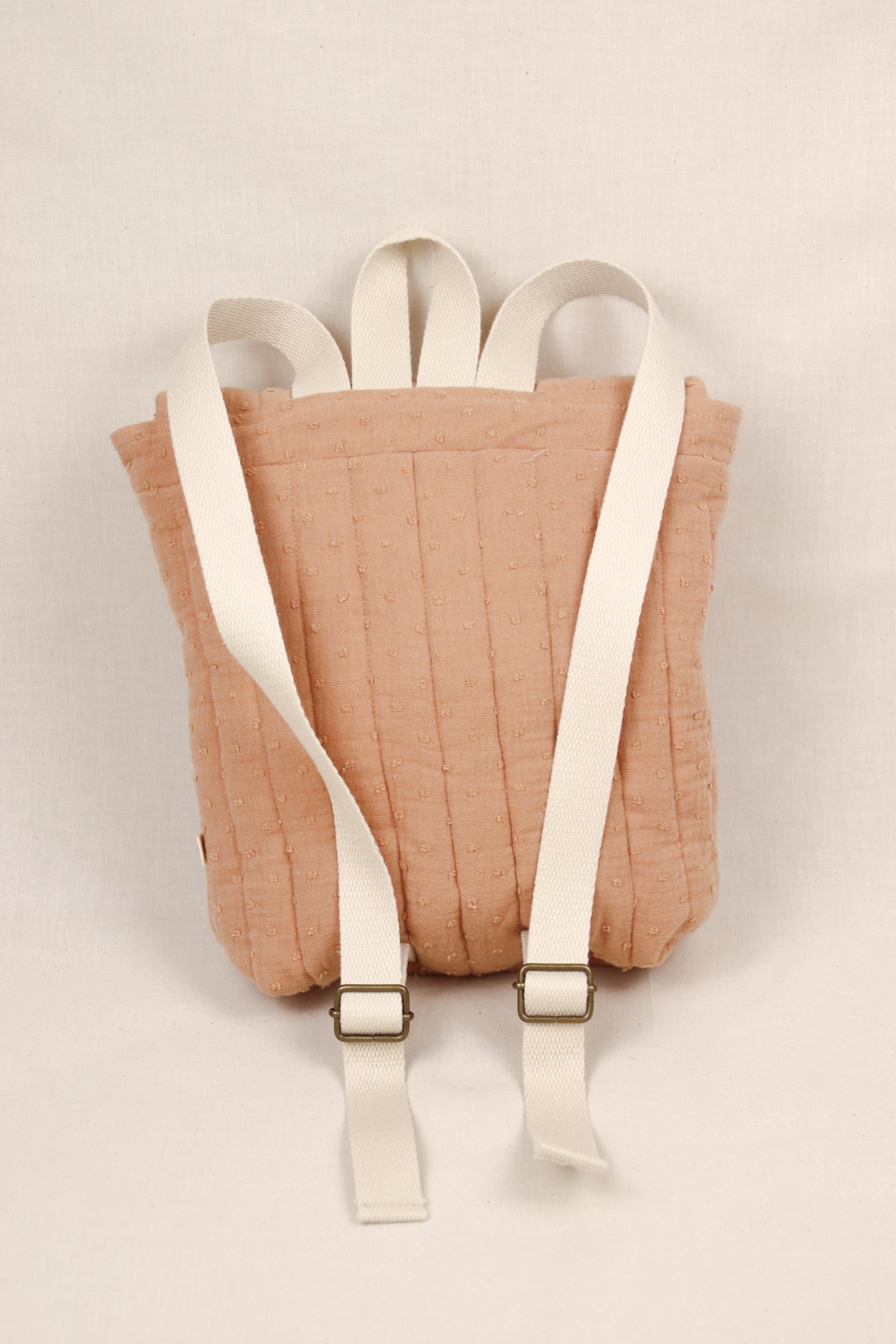 Dit lieve handgemaakte rugzakje is de perfecte metgezel voor kleine avonturiers. Het is gemaakt van zacht, lichtgewicht katoen en heeft een subtiel gewatteerde structuur die comfortabel draagt én er prachtig uitziet.
