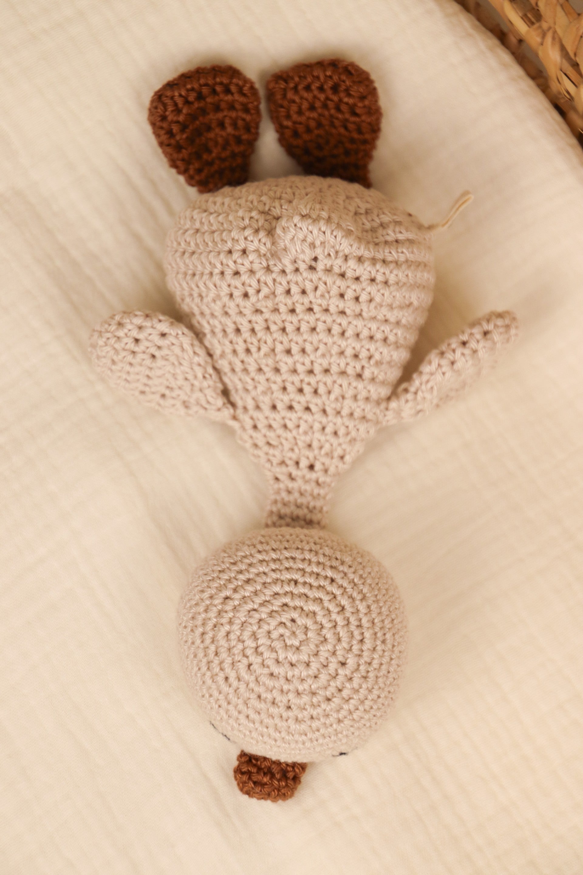 Met de hand gehaakt van 100% natuurlijk katoen is het een heerlijk, knuffelbaar vriendje dat meteen een gevoel van geborgenheid geeft.